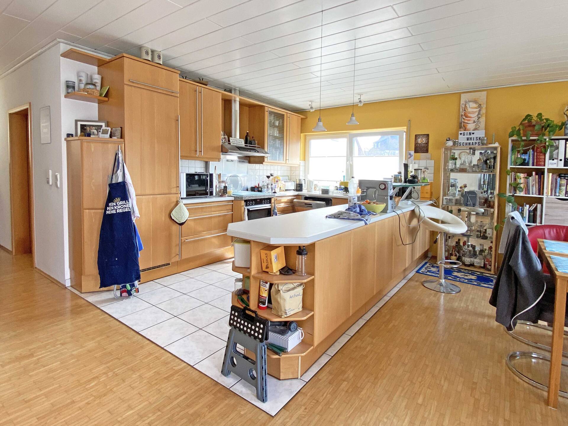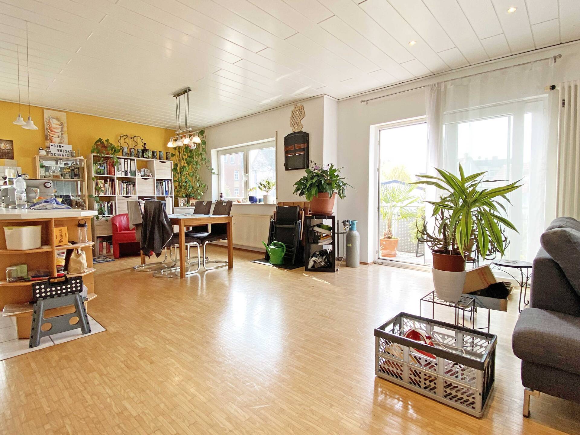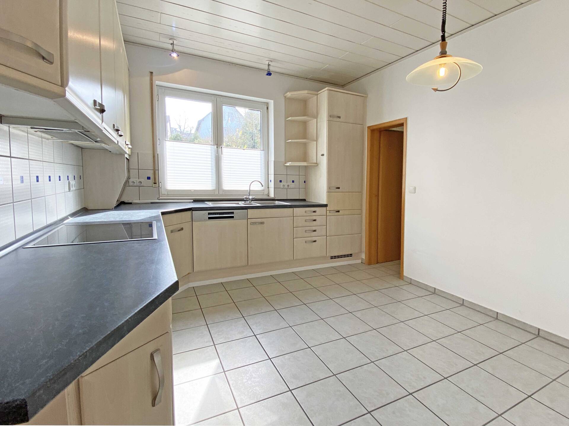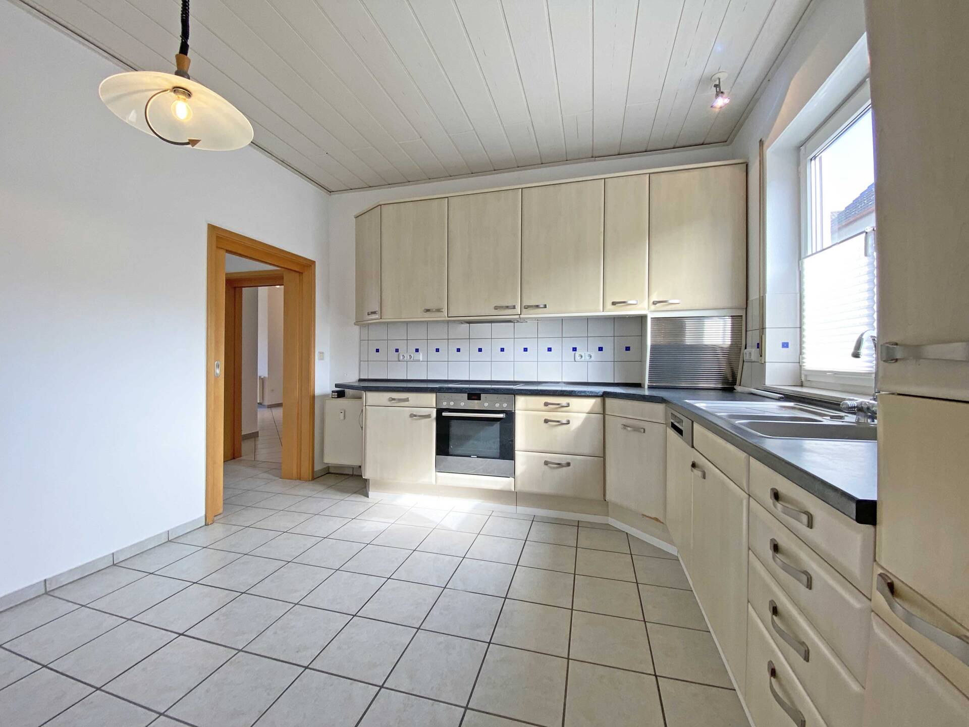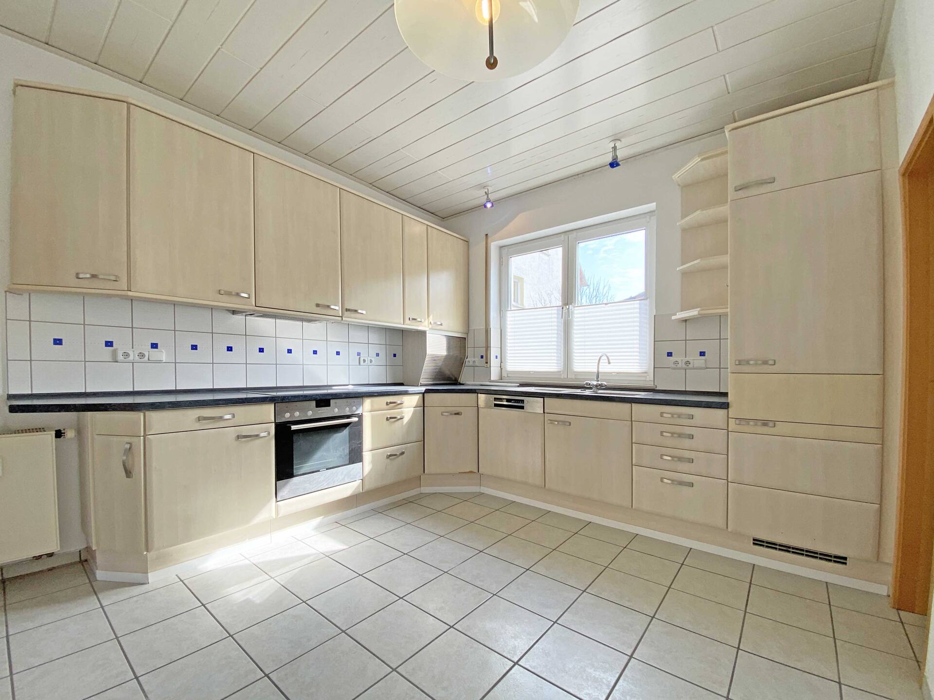 Die Erdgeschosswohnung bietet ein großzügiges Wohnzimmer mit angrenzendem Essbereich, wodurch eine angenehme Verbindung zwischen Wohnen und Essen entsteht. Die separate Küche ist funktional geschnitten und mit einer Einbauküche ausgestattet. Zwei weitere Zimmer stehen flexibel als Schlaf-, Kinder- oder Arbeitszimmer zur Verfügung. Das moderne Tageslichtbad bietet eine geräumige Dusche.