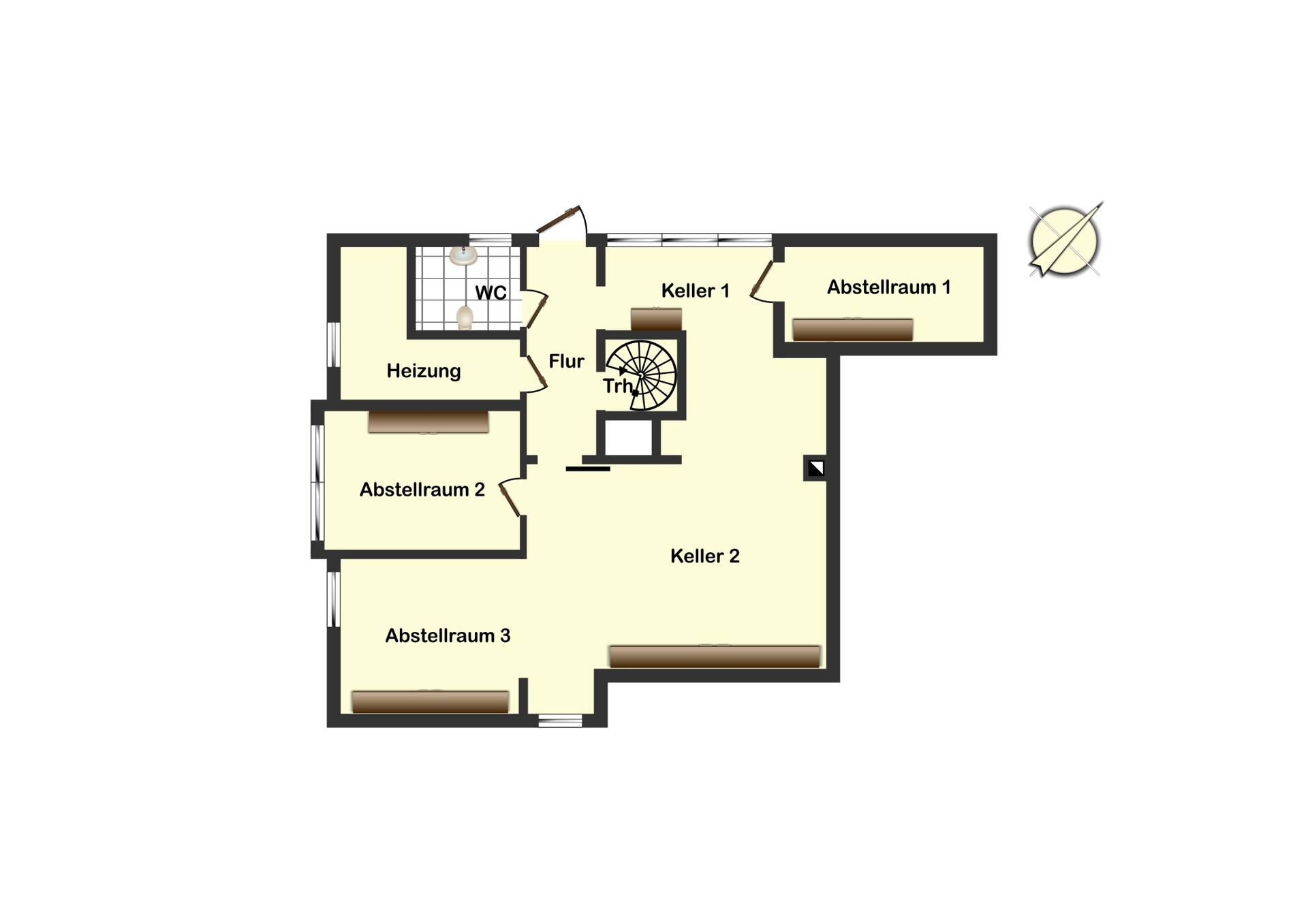 Die Beheizung erfolgt über eine moderne Gas-Zentralheizung. Das Kellergeschoss stellt umfangreiche Nutzflächen zur Verfügung.