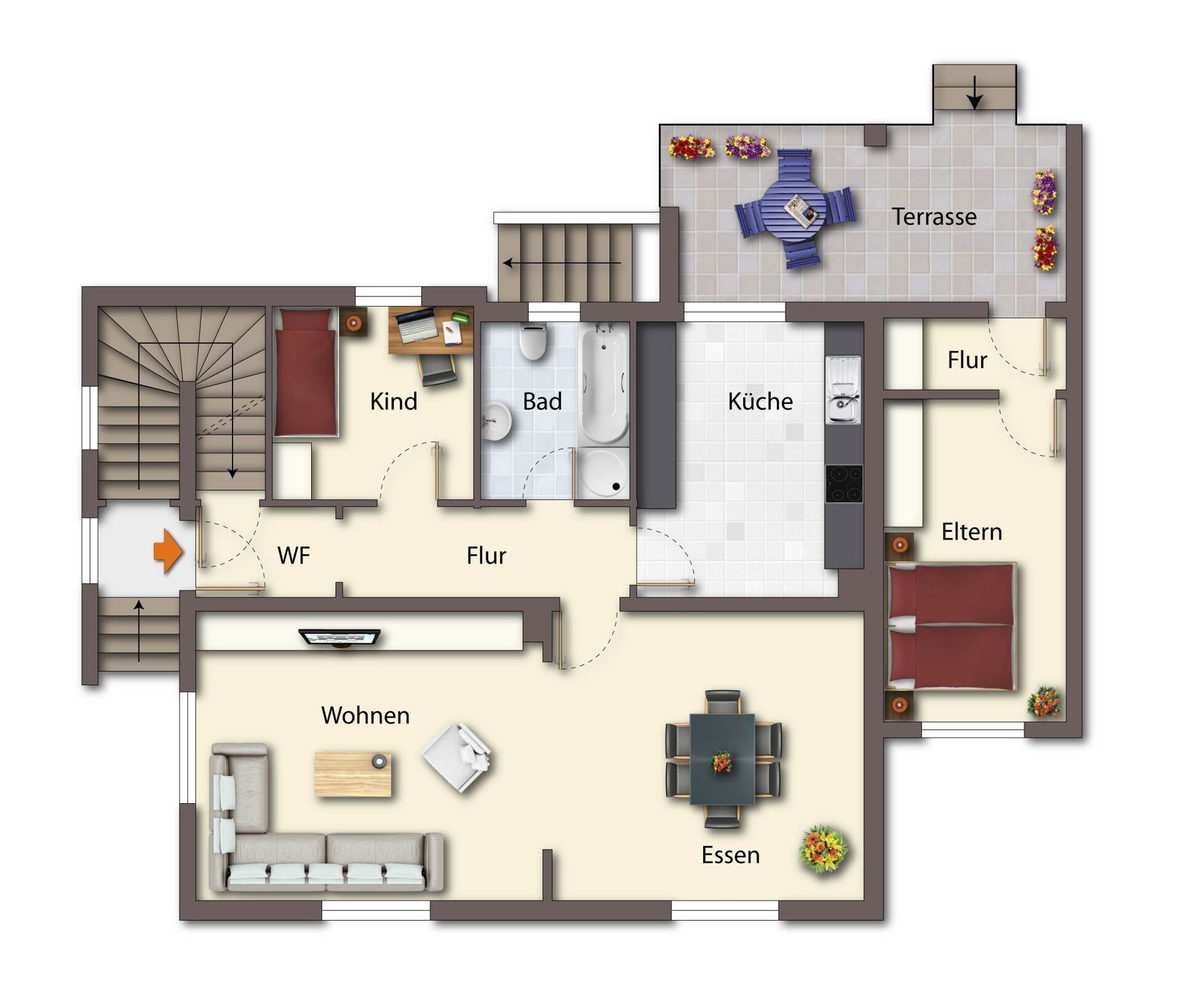 Zu Haus gehört ein eigener Garten, welcher gemeinschaftlich genutzt werden kann. Ergänzt wird das Angebot durch eine Garage.