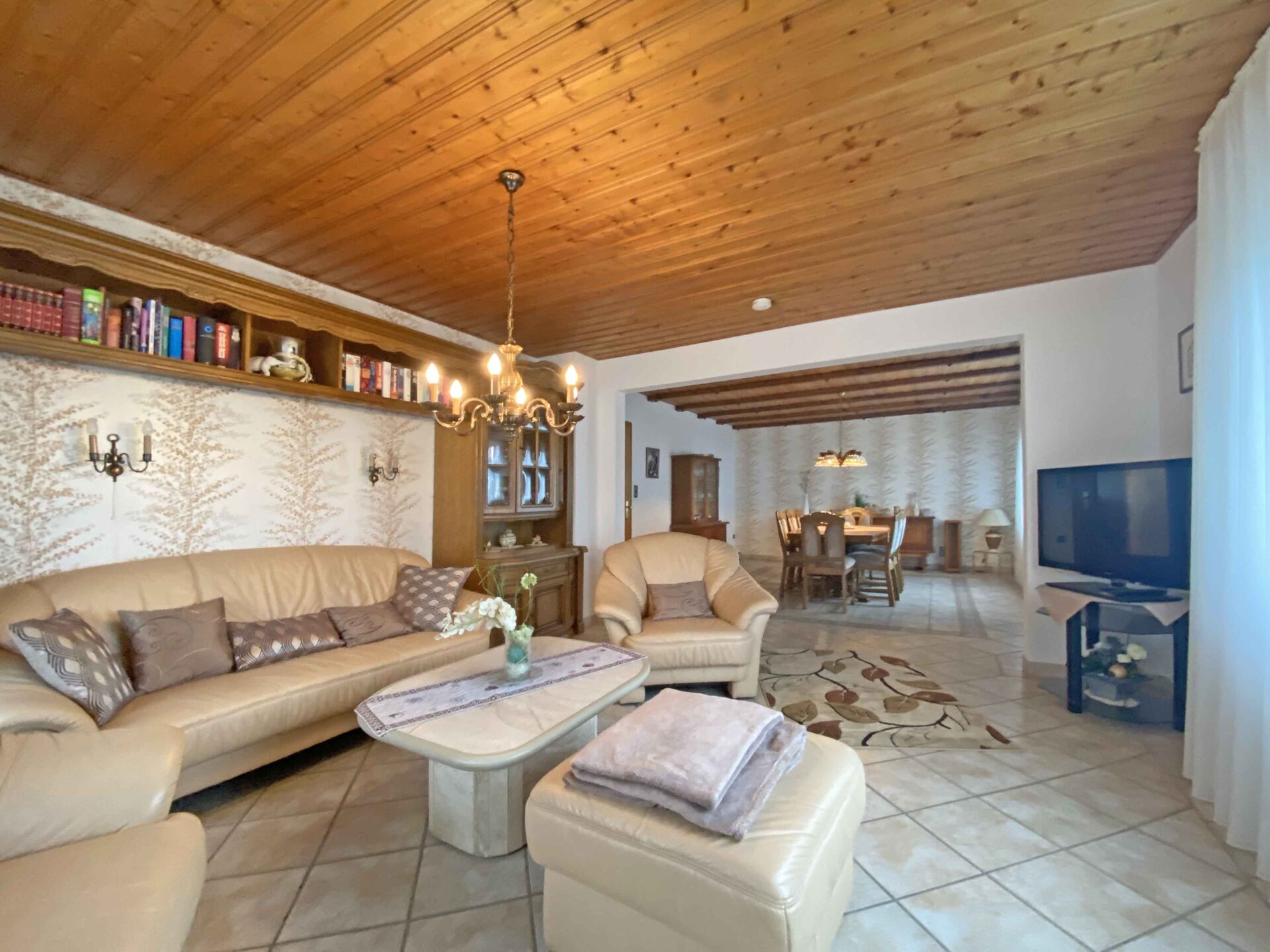 Die Immobilie wurde im Baujahr 1963 in Massivbauweise errichtet. Die Fenster sind Kunststoff-Isolierverglasung, die Beheizung erfolgt über eine Ölzentralheizung. Die Wohnfläche beträgt ca. 103,10 m², die Nutzfläche ca. 101,37 m². Die Böden sind durchgehend gefliest.