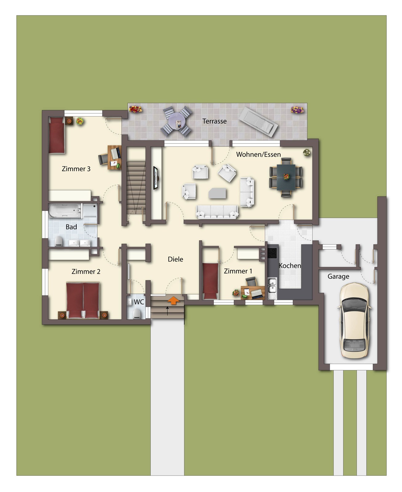 Das Herzstück des Hauses ist der lichtdurchflutete Wohnbereich, der durch seine offene Gestaltung ein behagliches Wohngefühl vermittelt. Große Fensterflächen öffnen den Blick in den Garten und schaffen eine harmonische Verbindung zwischen Innen und Außen. Hier finden Sie einen Ort der Ruhe – ideal zum Entspannen, Leben und Genießen.